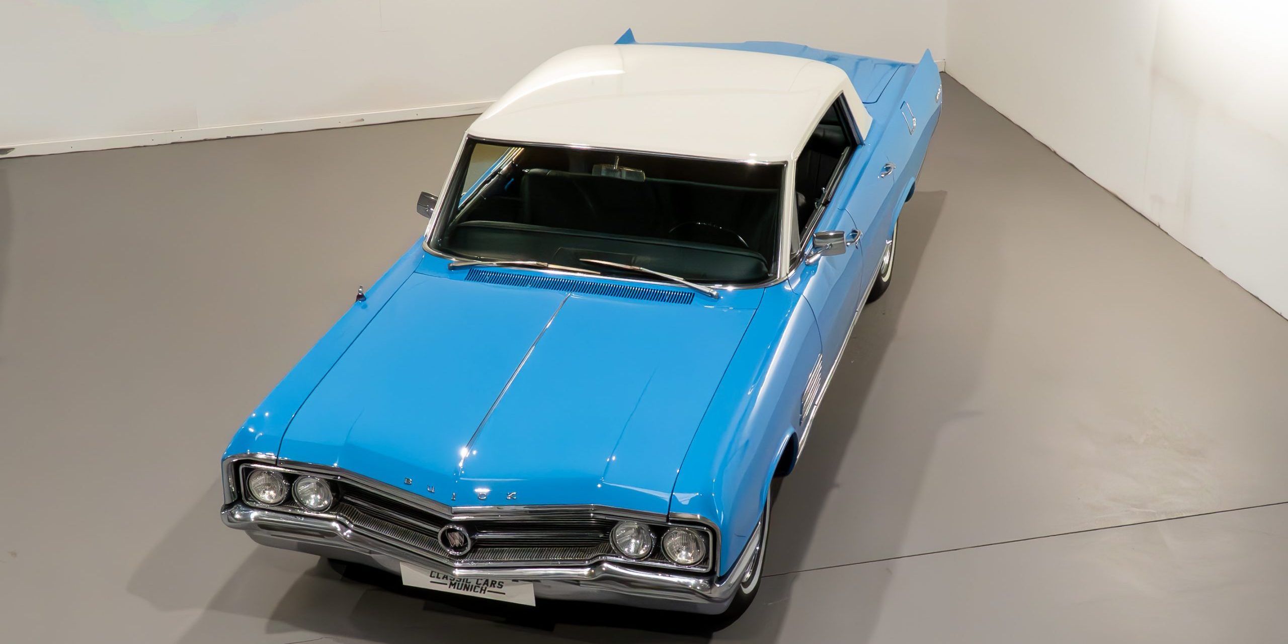 Unter der Haube arbeitet ein 8-Zylinder V-Motor mit 6.450 ccm und 239 kW / 325 PS, gekoppelt an ein 3-Gang-Automatikgetriebe mit Heckantrieb. Die Karosserie erstrahlt in stilvollem Blau/Weiß, der Tachometer wurde im Zuge der vollständigen „Frame-off“-Restauration auf null gesetzt.